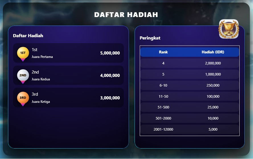 Detail peringkat dan hadiah: