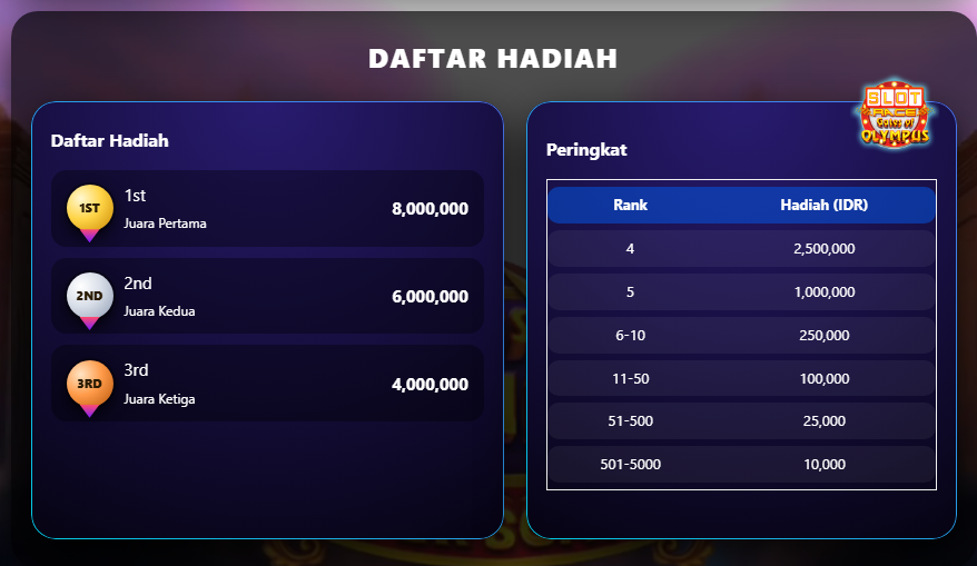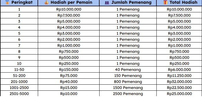 1. Total hadiah Rp 2,6 MILIAR & akan dibagikan kepada 5.000 pemain setiap hari selama periode promo berlangsung.
