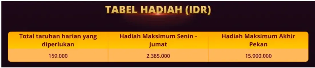dengan total 400 pemenang. Hadiah harian tertinggi hingga IDR