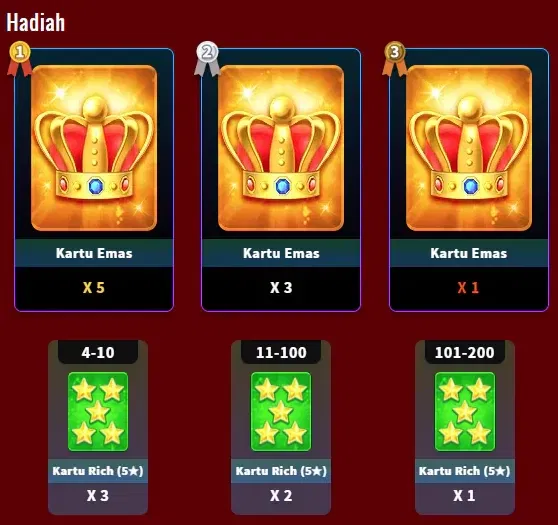3. Peringkat ditentukan berdasarkan akumulasi turnover pemain pada permainan Texas Poker setiap periode.